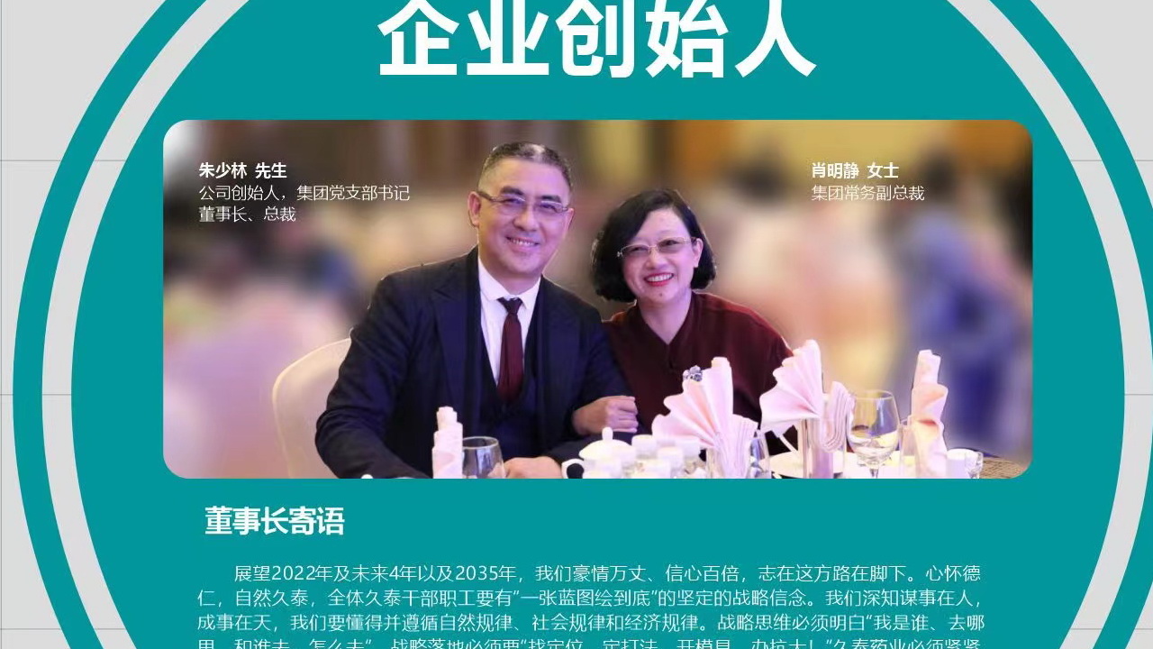久泰使命:為人類治病防病和健康水平的提高作貢獻!久泰愿景:受顧客、員工、股東歡迎,讓行業和社會尊重!久泰戰略:以顧客為中心,以奮斗者為本,永葆艱苦創業,以回報社會為榮!實現戰略目標的路徑:科學發展,文化助推!誠實勞動,勤奮工作,一絲不茍,精益求精!久泰價值觀:讓客戶價值、員工價值大化!久泰信念:世上無事不可為,一切皆有可能!久泰作風:快捷、認真、一諾千金。